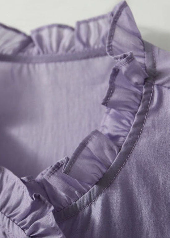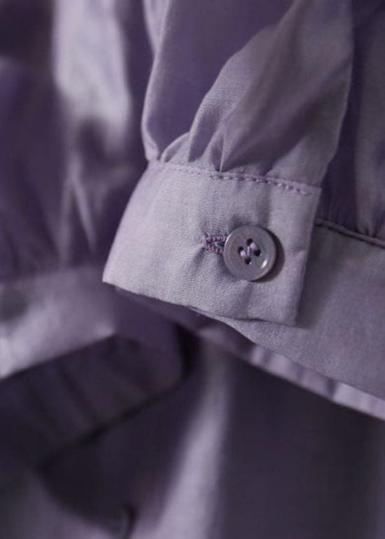Modern Purple Ruffled Patchwork Chiffon Shirts Tops Spring