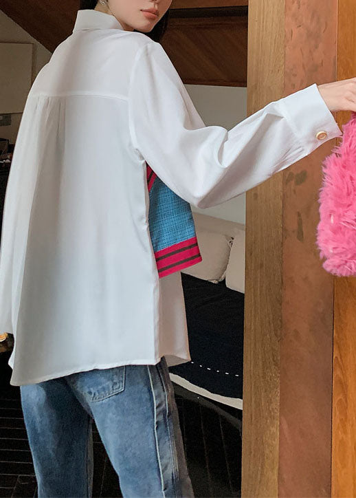 Natural White Patchwork False Two Pieces Cotton Shirts Spring LY0780
