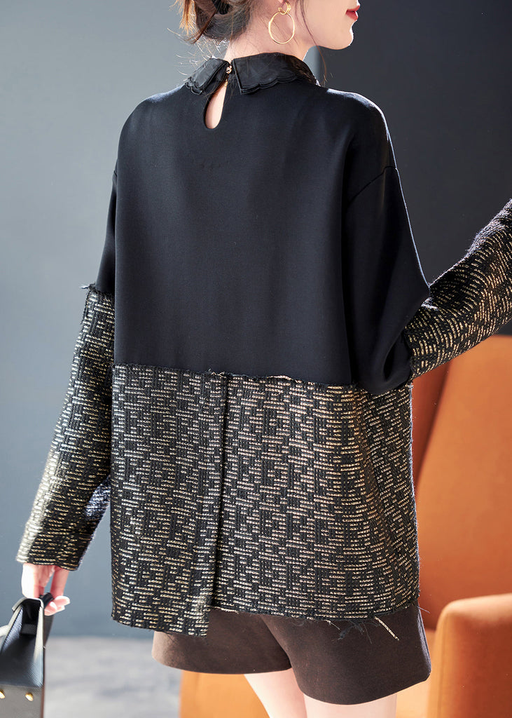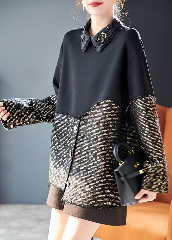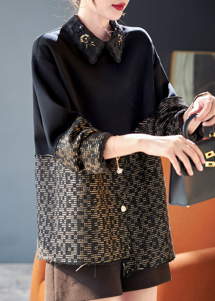 New Black Nail Bead Patchwork Cotton Shirts Spring RL039
