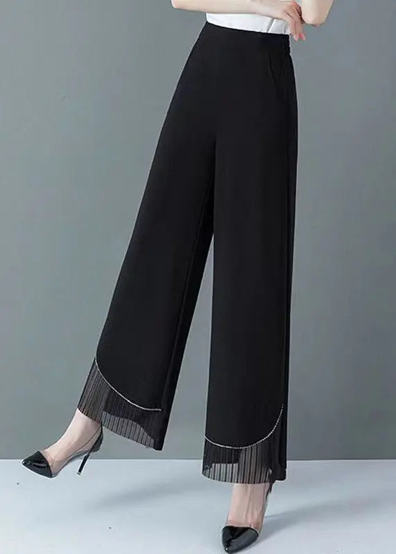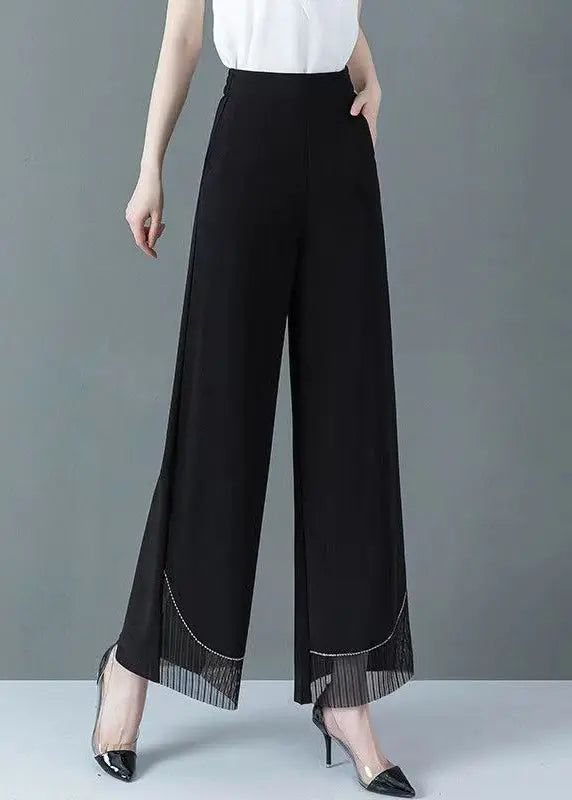 New Black Tulle Patchwork High Waist Straight Pants SpringFabric: Chiffon