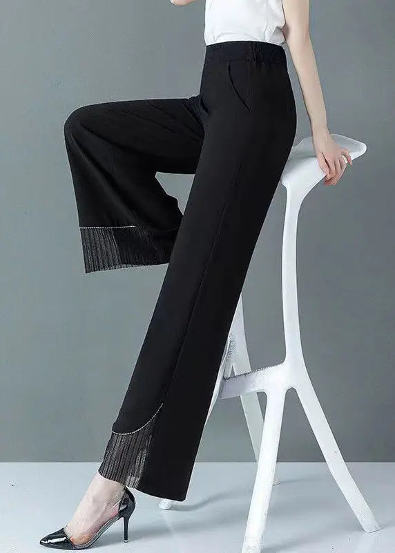 New Black Tulle Patchwork High Waist Straight Pants Spring HA1009
