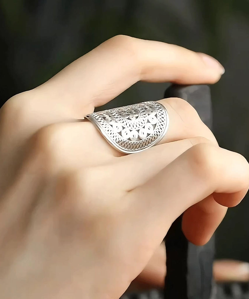 Oversize Silk Sterling Silver Hollowed Out Rings TX019