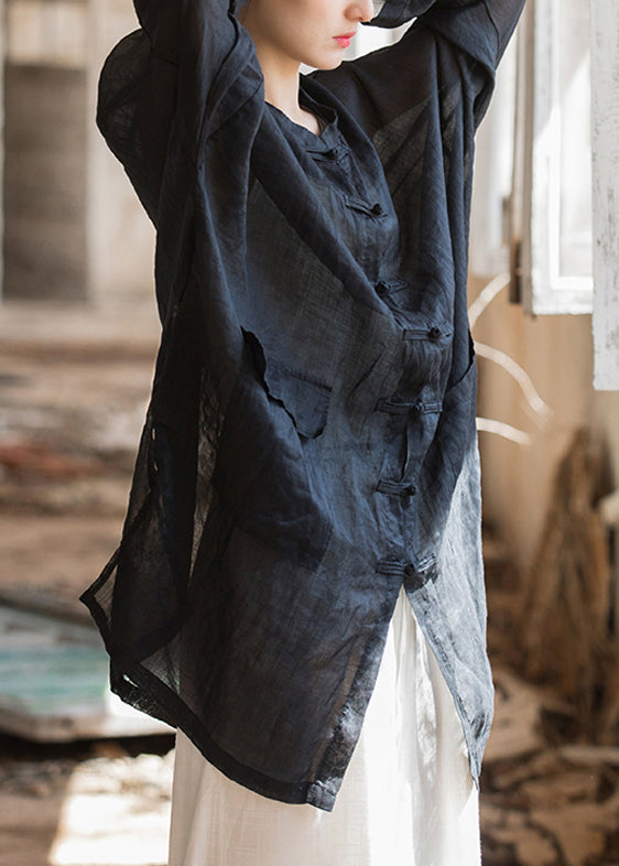 The Plus Size Black Oriental Button Linen Shirts Tops Spring TZ049 is evocative, to say the least, but that's why you're drawn to it in the first place.