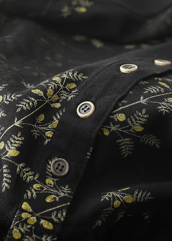 Print Maxi Spring Linen DIY Dresses Black Oversized