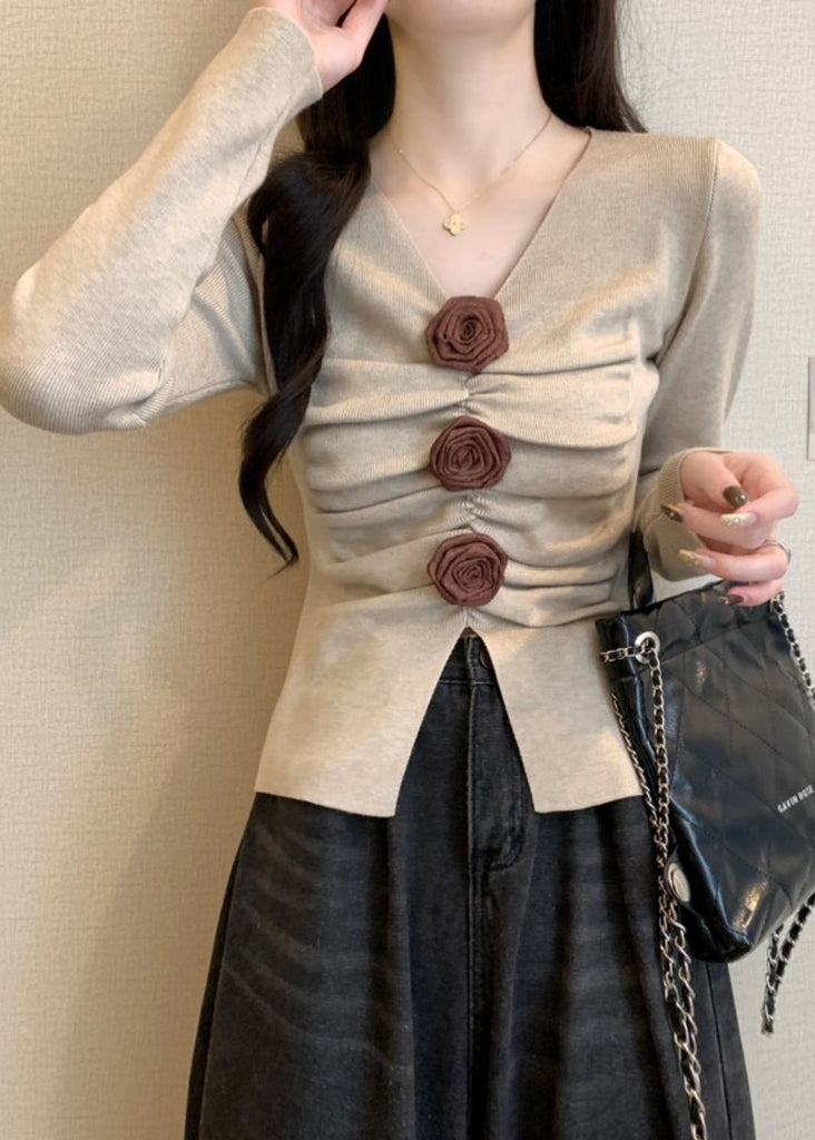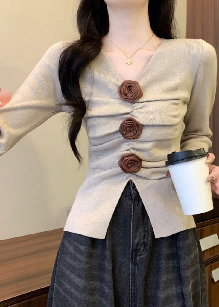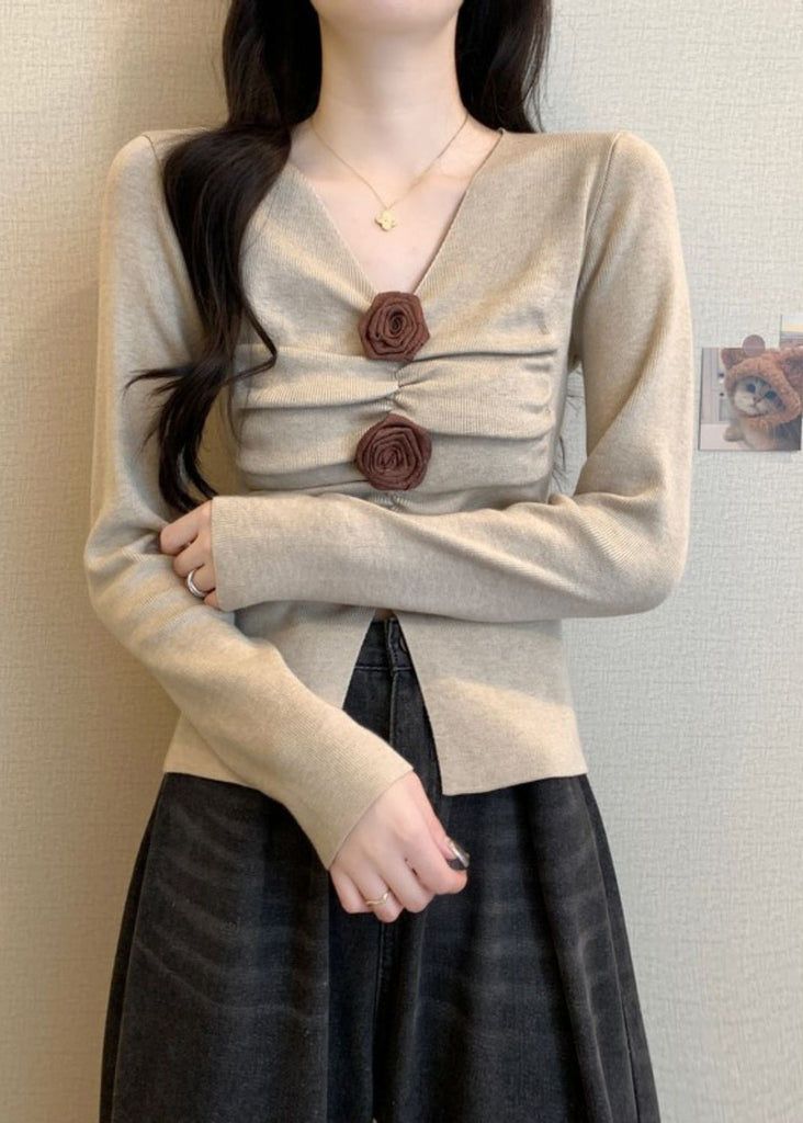 The Silm Fit White V Neck Floral Knit Sweater Spring TM030 destined to impress, and priced at only $60.99, for a limited time.