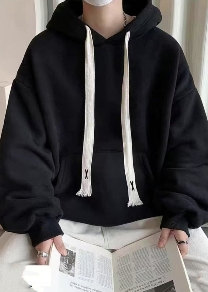 Indulge in effortless luxury with our exquisite Simple Black Hooded Lace Up Pockets Cotton Men Sweatshirt, perfect for elevating your spring wardrobe. Embrace the art of refined style with its sophisticated design and functional pockets.