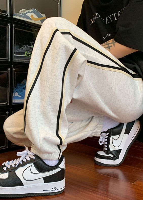 Simple Light Grey Pockets Drawstring Warm Fleece Mens Beam Pants Winter WA035