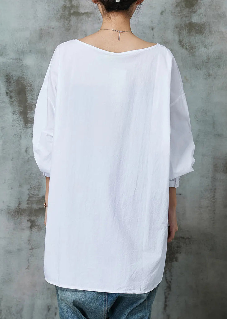 Simple White Oversized Print Cotton Blouses SpringFabric: Cotton Blended
