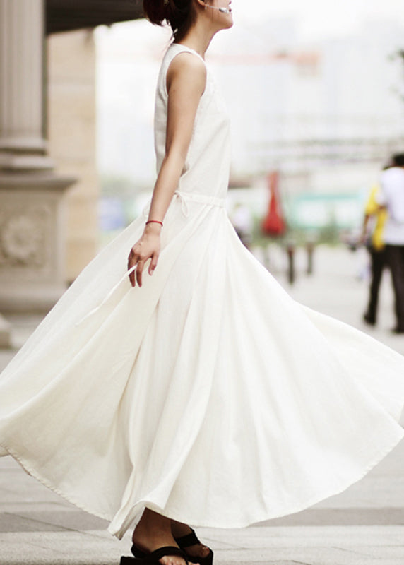 Solid Drawstring Ruched Sleeveless Casual Maxi Dress Navy LC0044