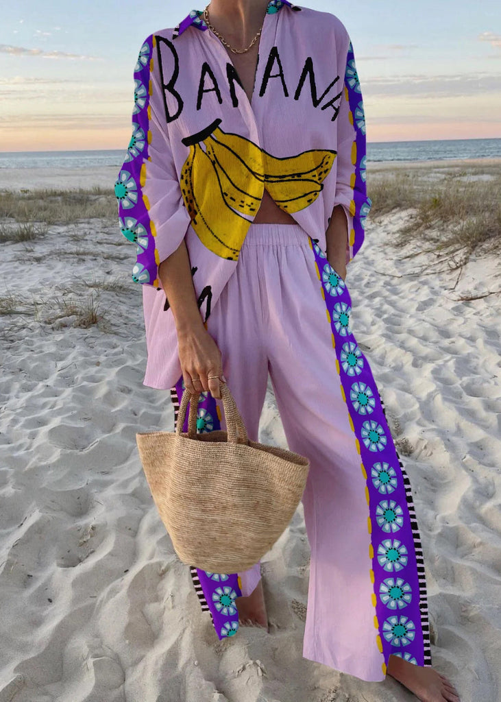 Spring Cotton Collar Set New Two Pink Peter Pieces Print Pan