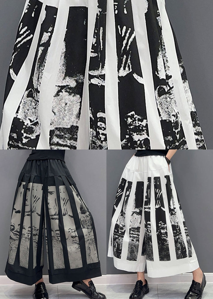 Style Black Elastic Waist Pockets Print Cotton Wide Leg Pants Spring LY0568