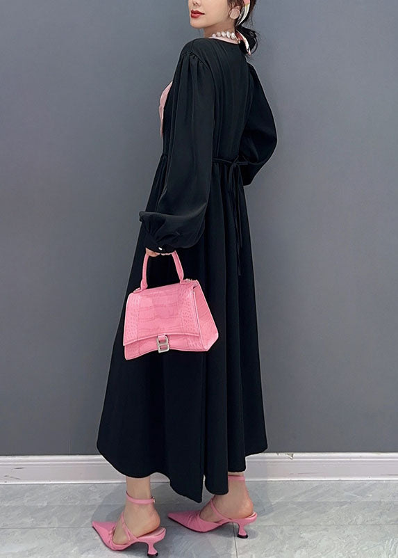 Unique Black V Neck Bow Patchwork Cotton Princess Dress Spring LC0365