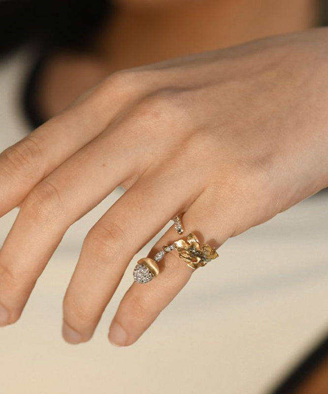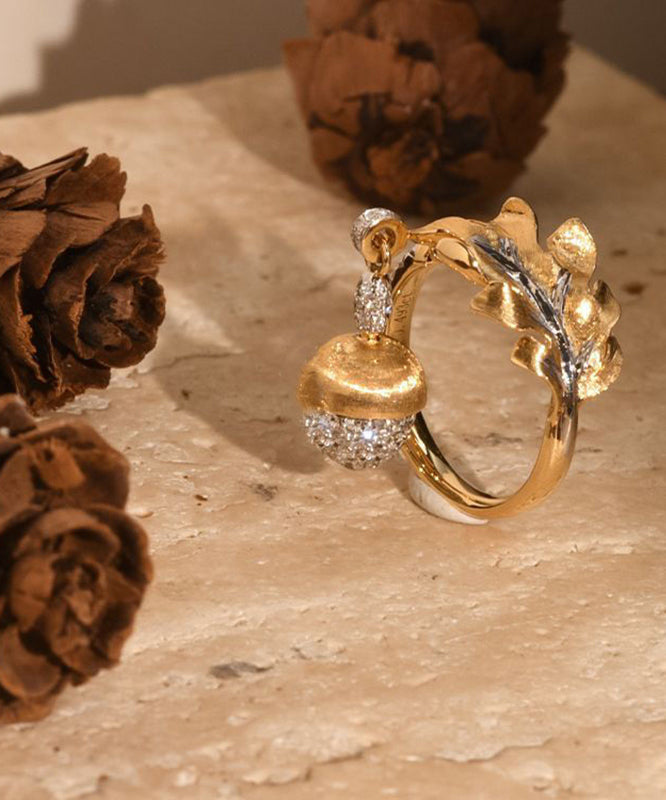 Unique Gold Sterling Silver Overgild Zircon Pine Nut Tassel Rings QJ029