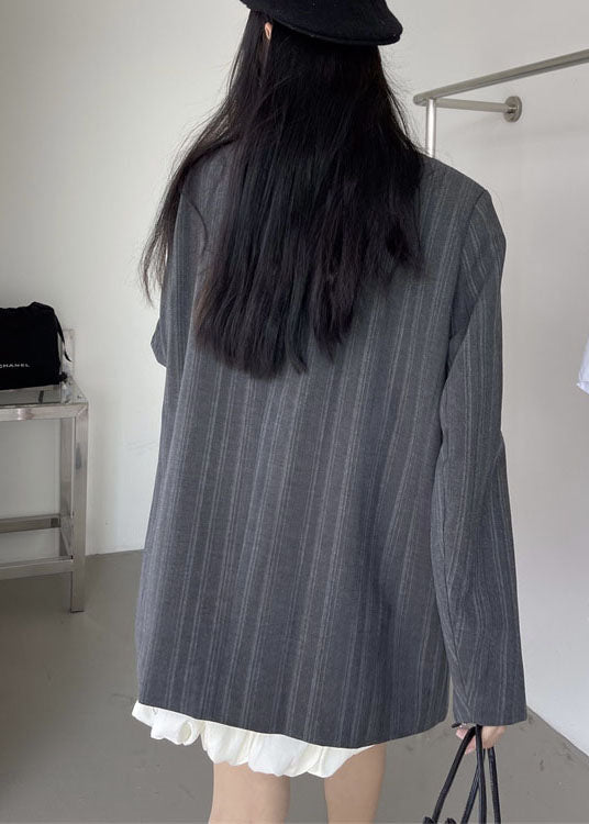 Unique Grey Stand Collar Striped Patchwork Cotton Coats Spring