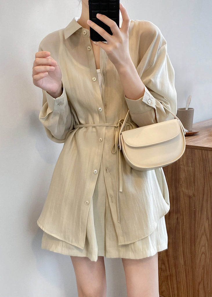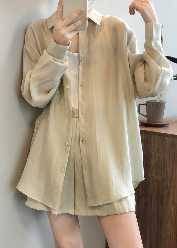 Women Light Green Lace Up Solid Silk Two Pieces Set Spring Fabric: Silk Blended Size & Fit: Fit: This garment fits true to size. Length: Size 2XL measures 27.69"from shoulder to hem Bust: Great for any cup size. Waist: Loose Fit. Comfortable room throughout midsection. Hip: Loose Fit - room for hips. Hand Wash Cold.