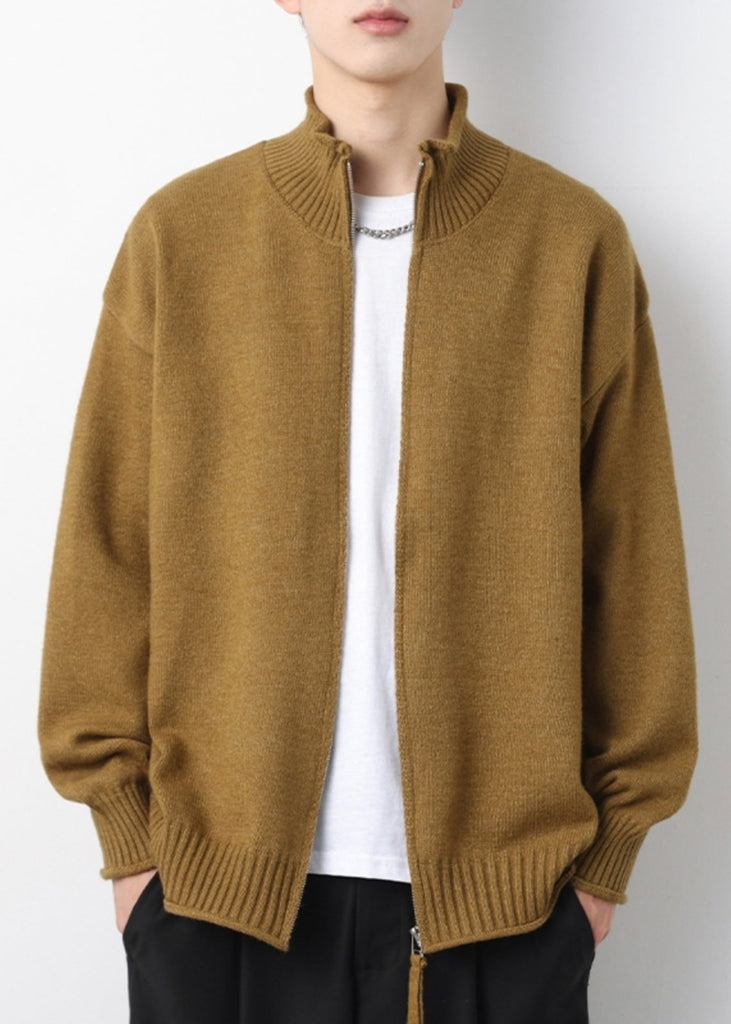 Simple Yellow Zip Up Solid Knit Mens Cardigans Spring