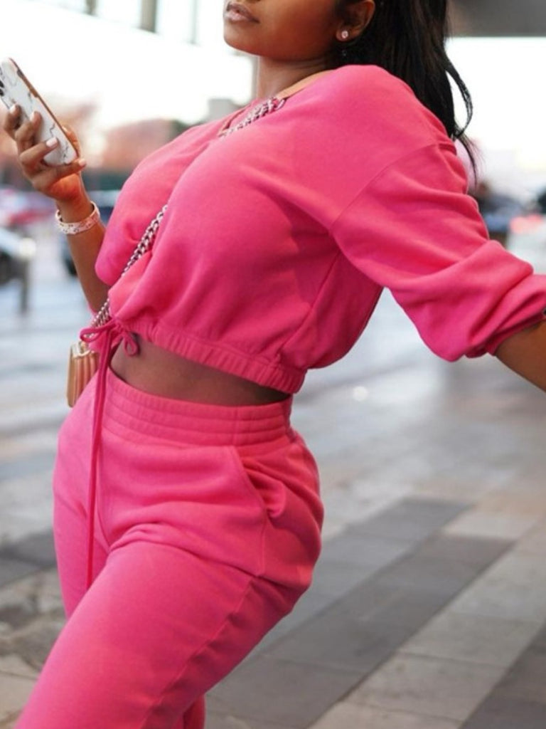 The BASICS Crop Top Drawstring Pants Set BO5063 destined to impress, and priced at only $35.39, for a limited time.
