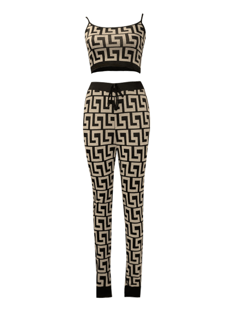 Cami Geometric Print Drawstring Three Piece Pants Set BO5084