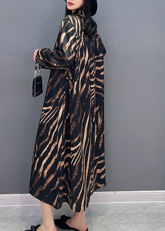 Women Black Peter Pan Collar Print Button Long Shirts Dress Spring LC0315