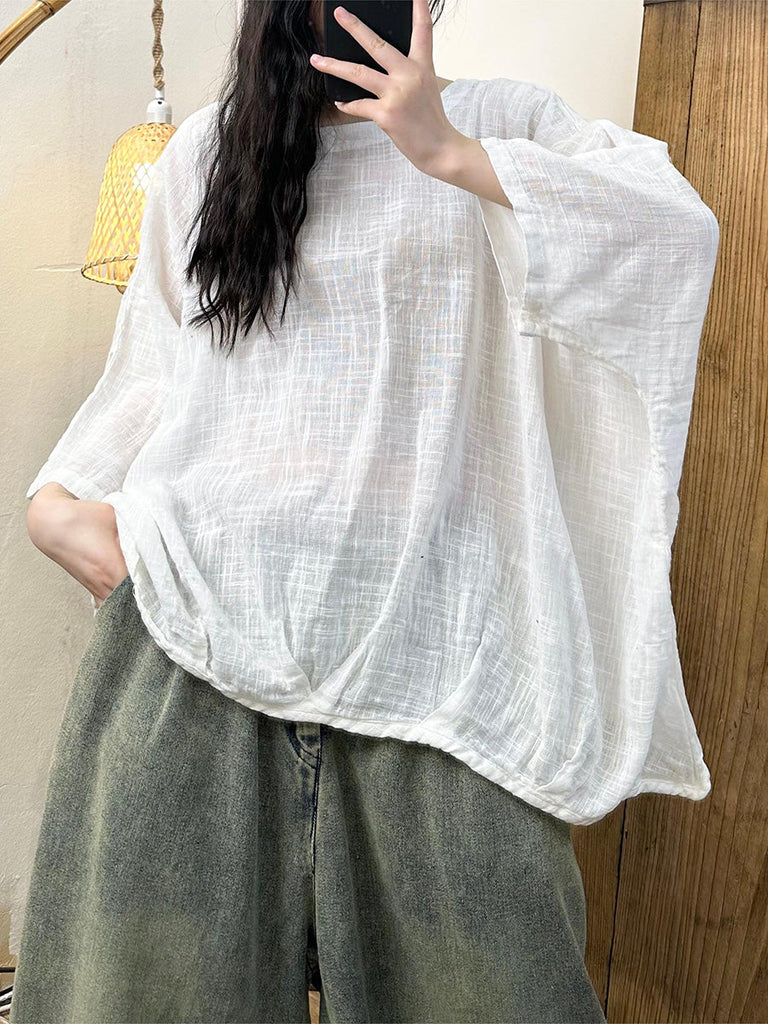 Women Casual Spring Solid Linen Batwing Sleeve Shirt CO1028