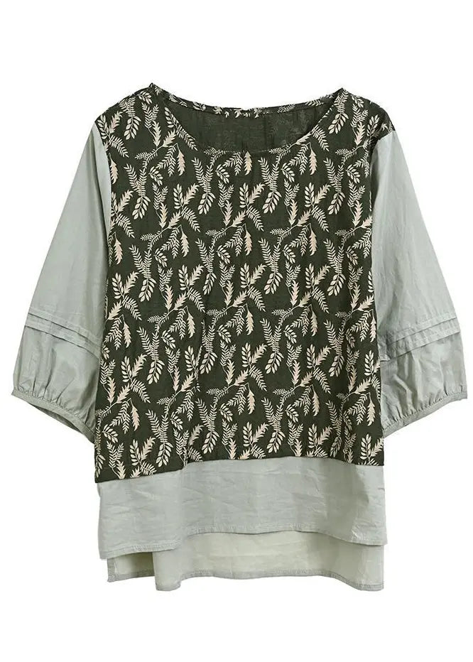 Women Green Embroidered Patchwork Linen Two Pieces Set Spring HA1022