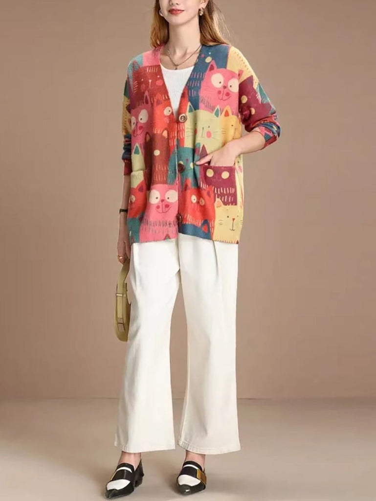 Indulge in the comfort and versatility of our Women Spring Cute Cat Knitted Cardigan Sweater. Crafted with a vibrant color palette, this timeless piece is perfect for any occasion. Express your unique style with a touch of playfulness, just like our adorable cat design. A must-have for every fashion-forward woman.