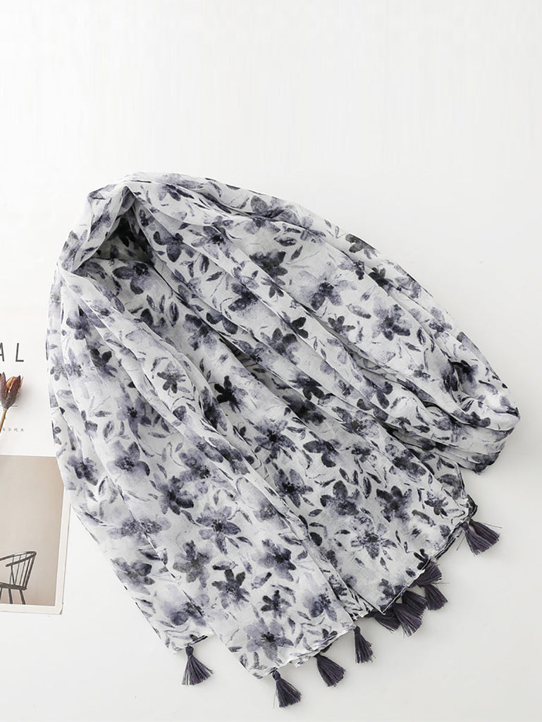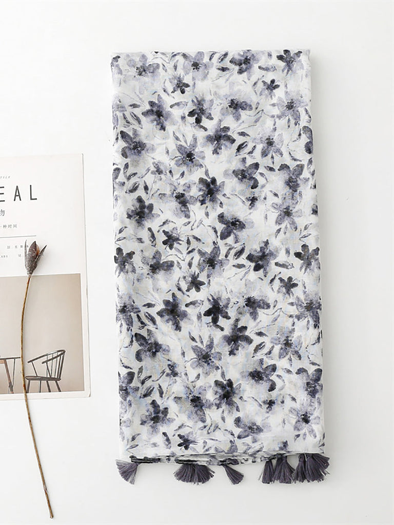 Women Spring Floral Tassel Shawl Scarf XX1017