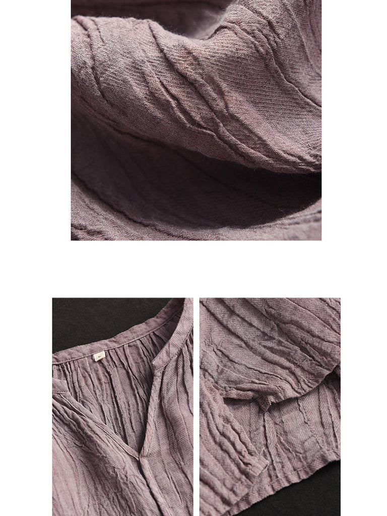 Women Spring Solid Vintage Ramie V-neck Blouse CO1013