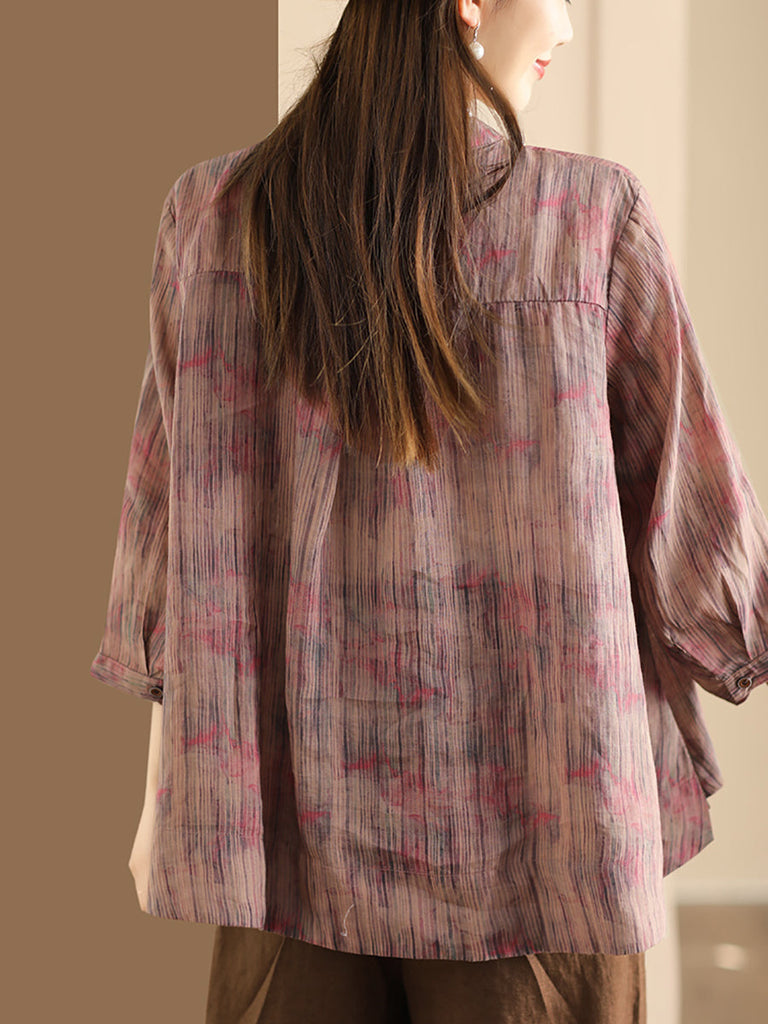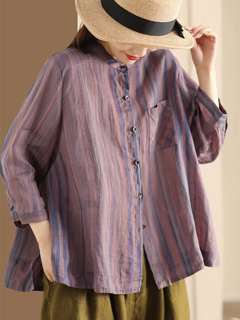Women Spring Vintage Stripe Button-Up Blouse CO1007