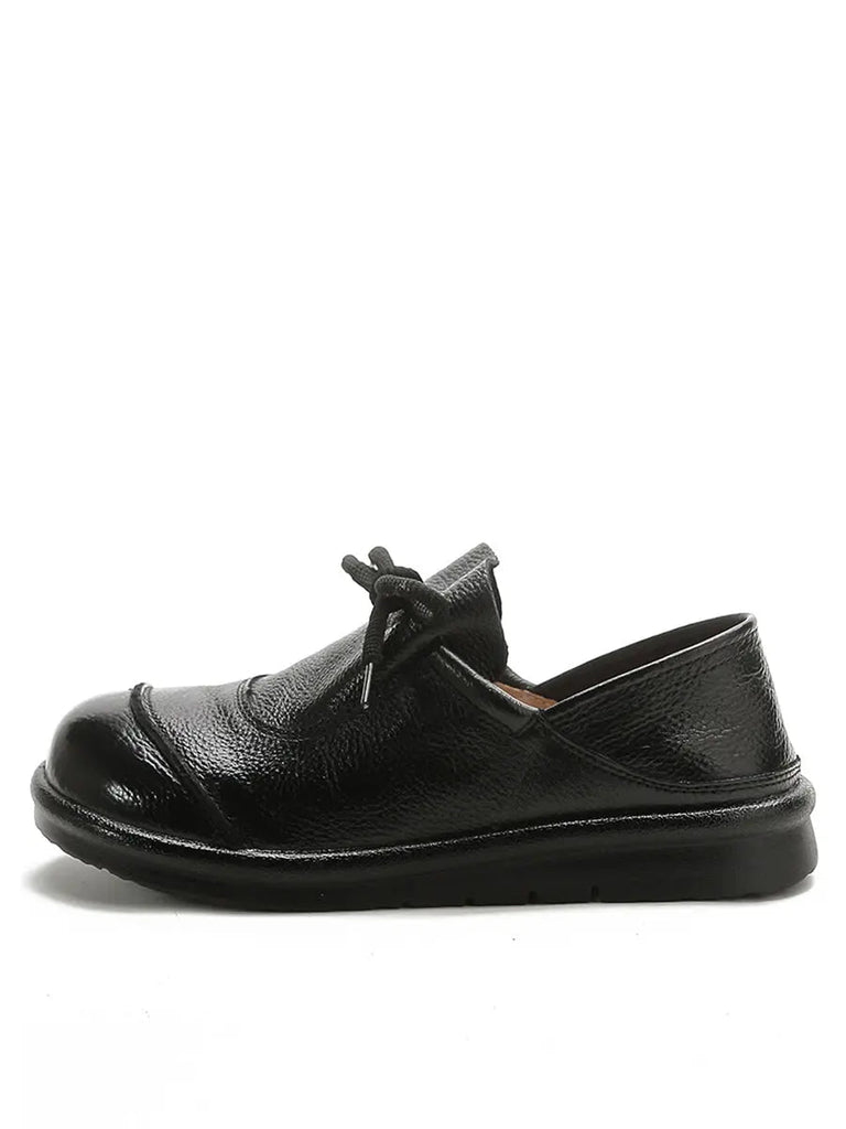 Women Leather Drawstring Flat Shoes