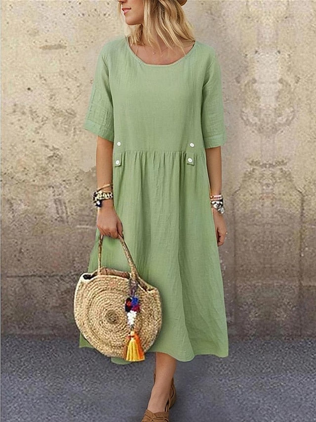 Women's White Purple Green Summer Spring Midi Dress Faux