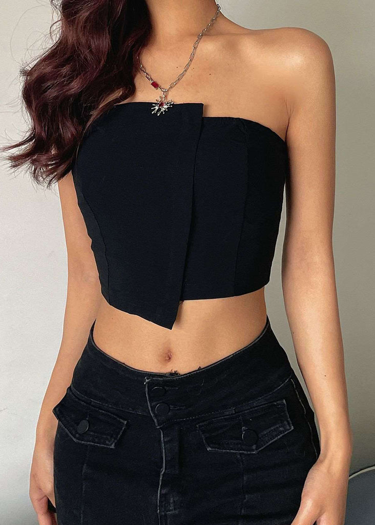 The Sexy Black Strapless Solid Cotton Tank Sleeveless YZ032 is a sensational customer favorite, and we hope you like it just as much.