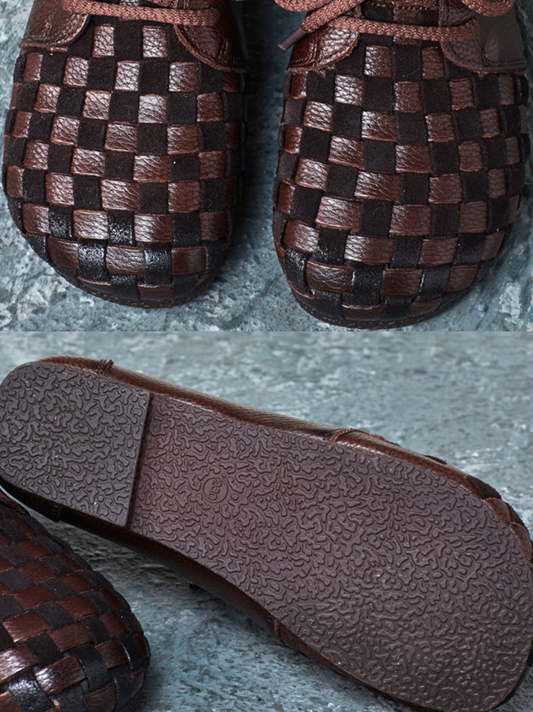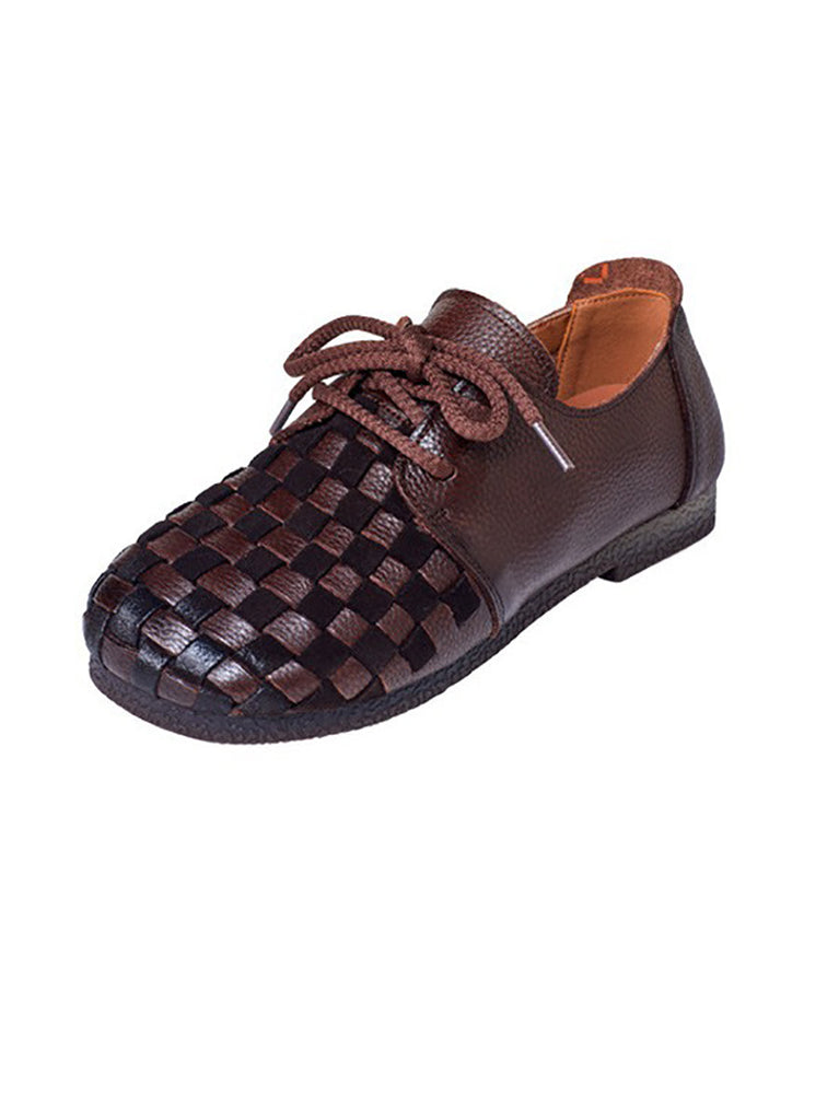 Women Autumn Vintage Soft Leather Waeve Flat Shoes AT1029