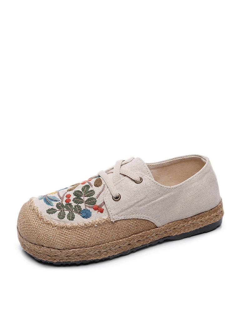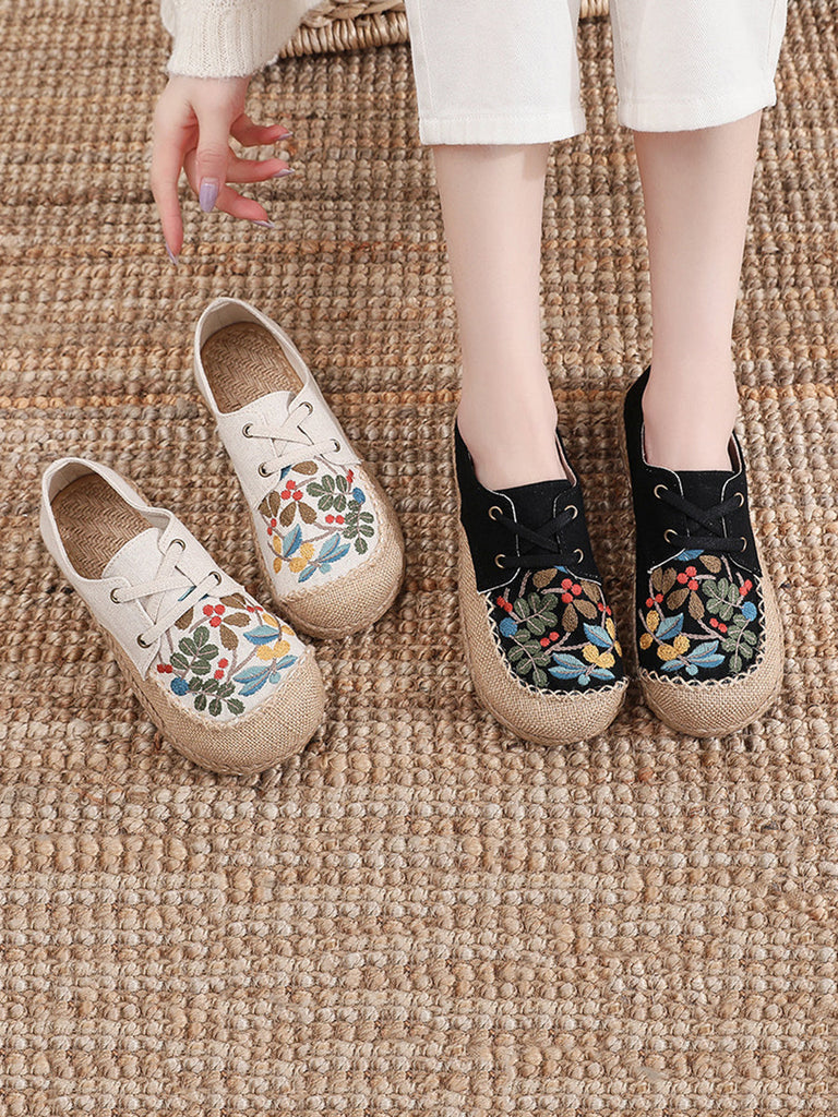 Women Summer Vintage Flower Embroidery Linen Cloth Shoes AT1068