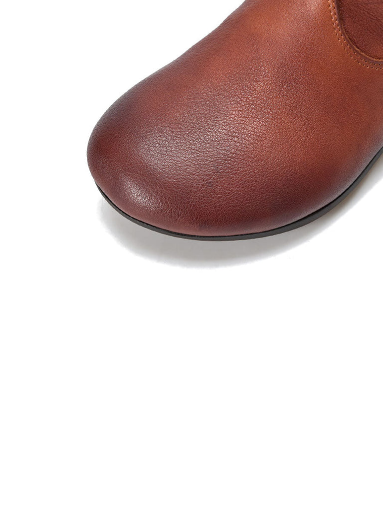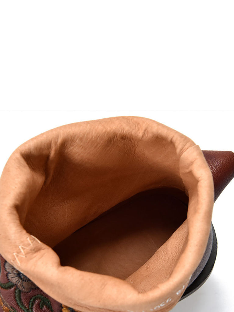 Women Vintage Flower Embroidery Leather Low Heel Boots AX1050 Genistyle Shop