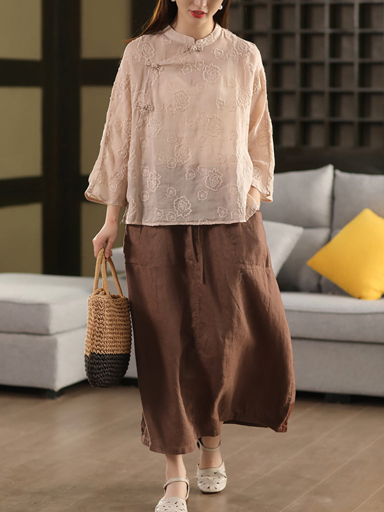 Pure Women Color 100%Linen Skirt Summer FashionChic