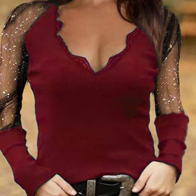 Fabric: Spandex, Polyester, Gender: Women's, Tops Type: Blouse, Design: Lace, Ruched, Occasion: Going out, Daily, Holiday, Style: Vintage, Stylish, Fit Type: Regular Fit, Neckline: V Neck, Sleeve Length: Long Sleeve, Elasticity: Micro-elastic, Look After Me: Machine wash, Top Length: Regular Tops, Pattern: Plain, Season: Fall, Winter, Spring,