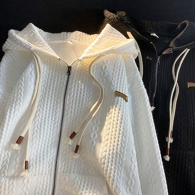 Women's Zip Up Hoodie Sweatshirt Active Sportswear Textured