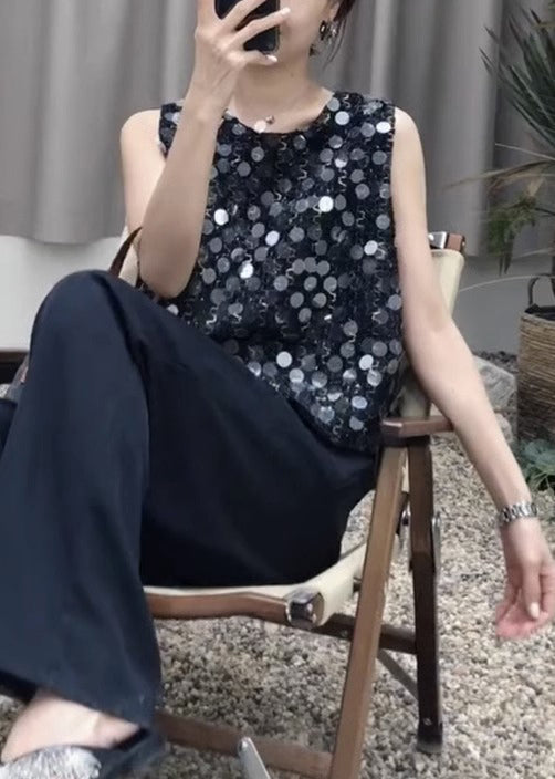 Every product is unique, just like you. If you're looking for a product that fits the mold of your life, the French Black O Neck Sequins Patchwork Tank Sleeveless WY001 is for you.