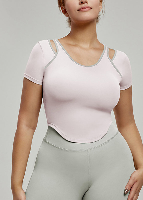 Chic Khaki Patchwork Hollow Out Yoga Tank Tops Summer