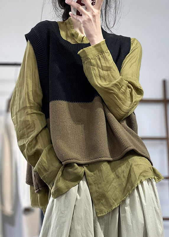 Loose Casual Apricot O Neck Knit Tank Sleeveless OO006