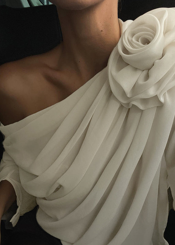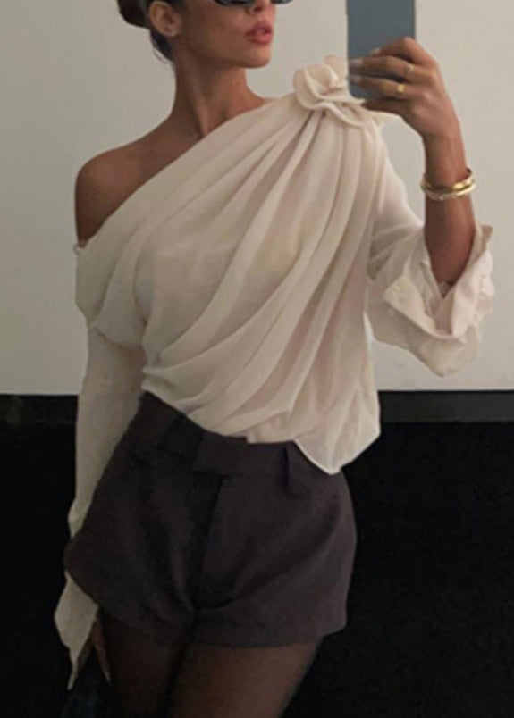 Brief Apricot Floral One Shoulder Chiffon Top Spring Fabric: Chiffon Size & Fit: Fit: This garment fits true to size. Length: Size L measures 21.06"from shoulder to hem Bust: Great for any cup size. Waist: Loose Fit. Comfortable room throughout midsection. Hip: Loose Fit - room for hips. Hand Wash Cold.