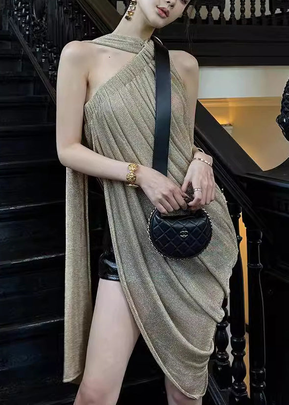 Art Light Green Asymmetrical Wrinkled One Shoulder Silk Top Sleeveless
