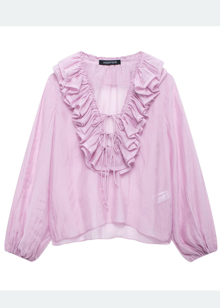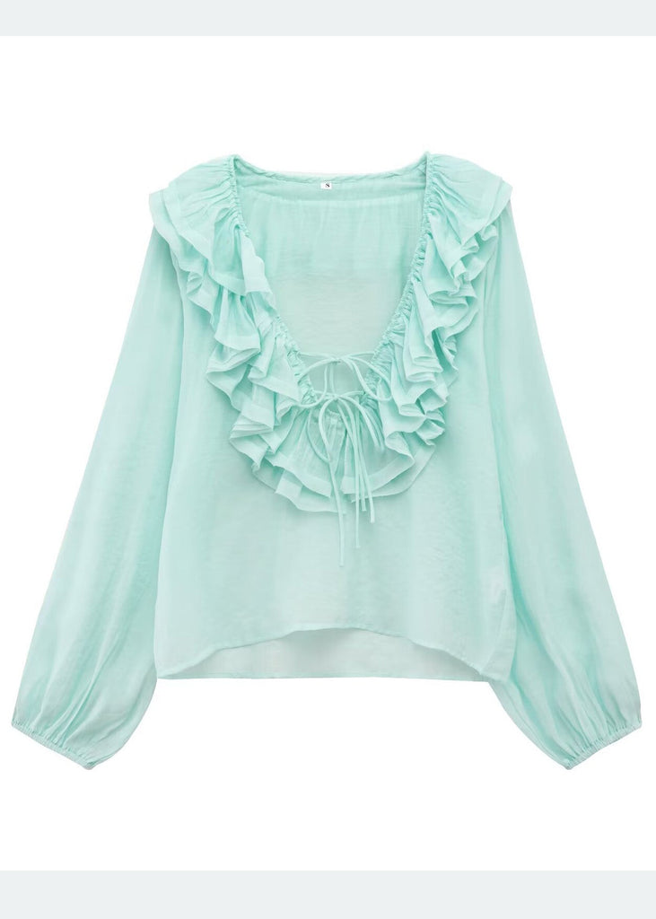 Shirt Bohemian Blue Sky Cotton Ruffled Tops Summer