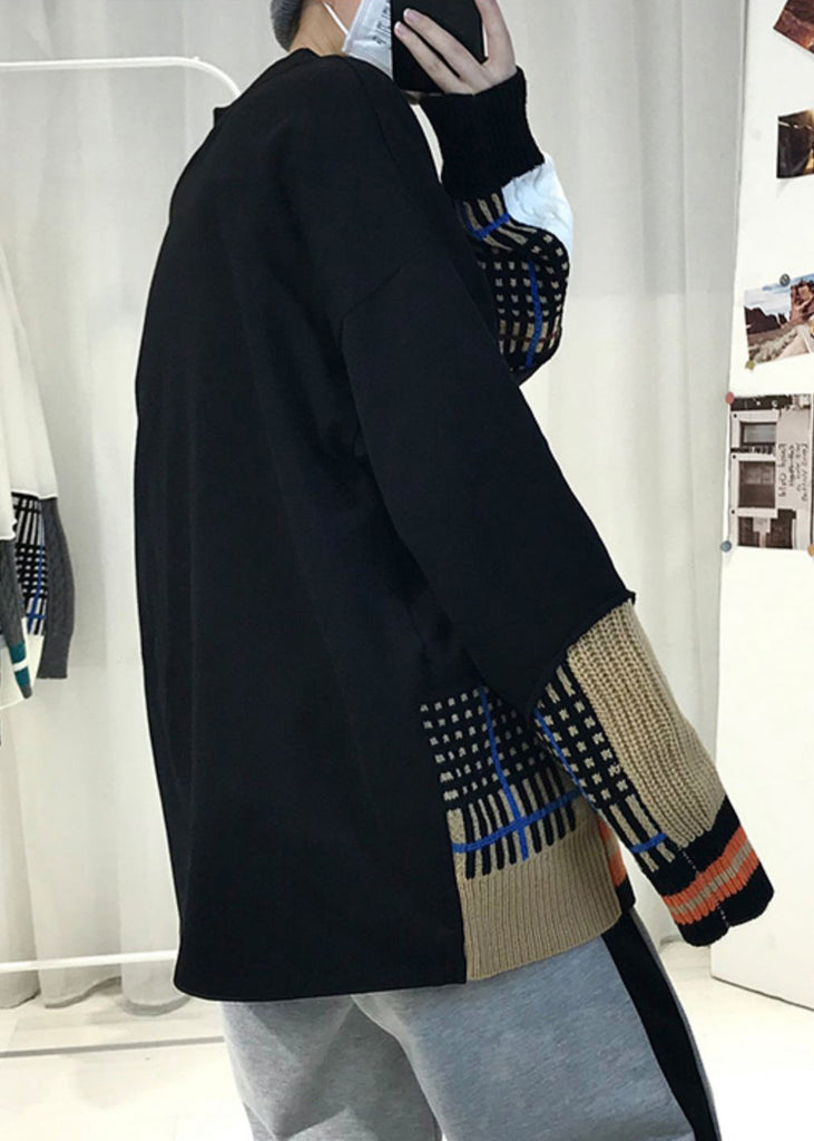 Chic Black Asymmetrical Knit Patchwork Men T Shirts Fall RP067