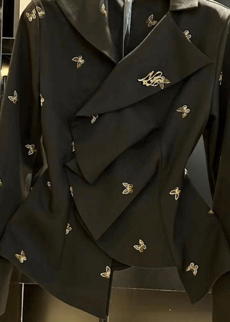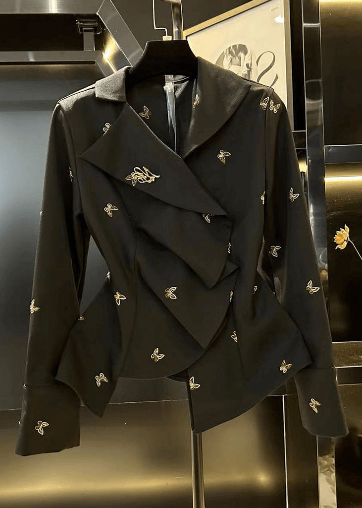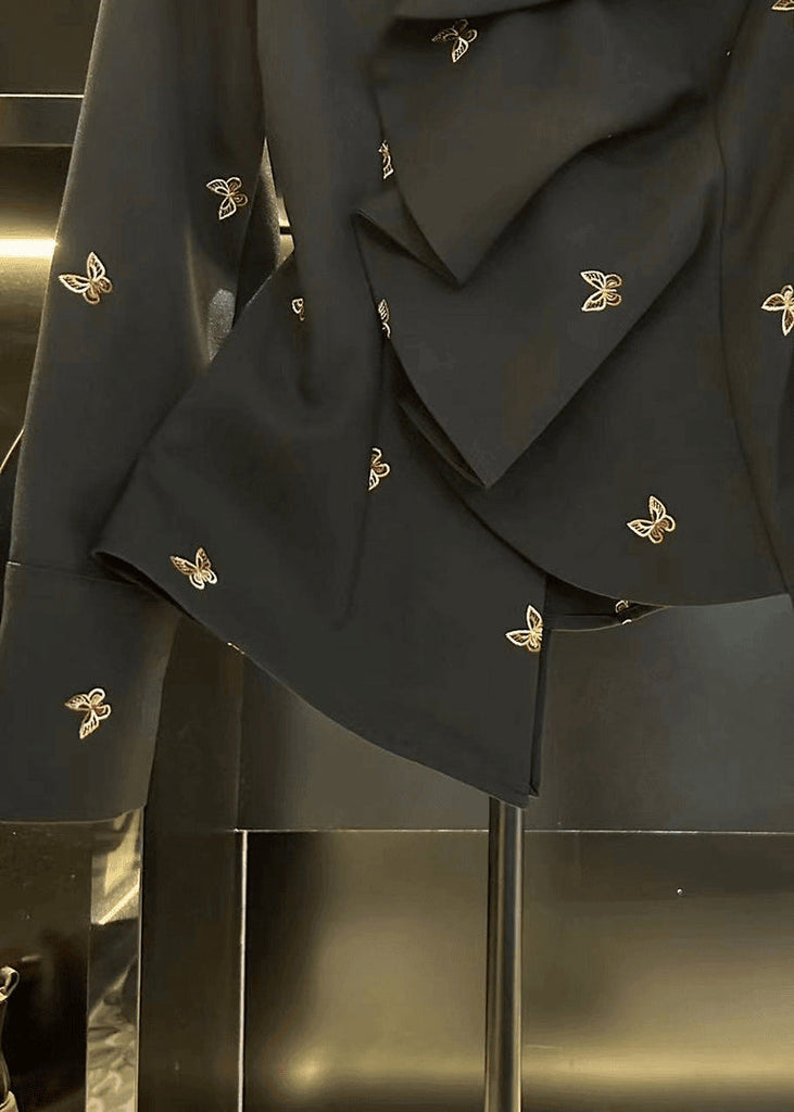 French Black Asymmetrical Butterfly Spandex Shirt Fall RK023
