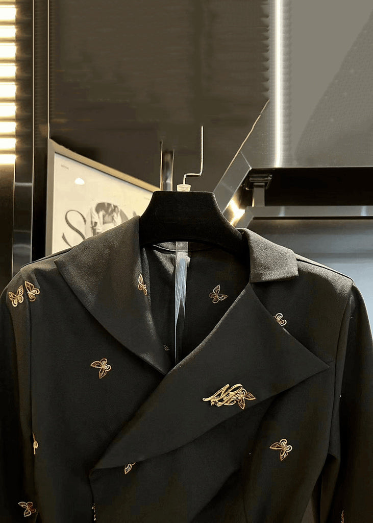 Indulge in the opulent allure of our French Black Asymmetrical Butterfly Spandex Shirt, ideal for the sophisticated and fashion-forward. This exquisite piece is perfect for the fall season with its edgy asymmetrical design and comfortable stretch material. Elevate your wardrobe with this luxurious statement piece.