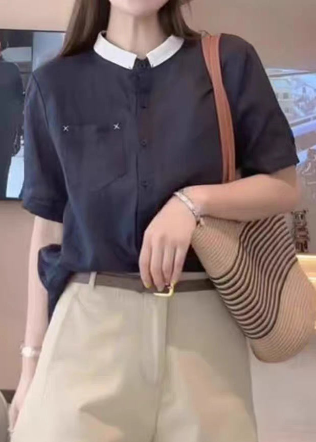 Life is too short to live without the Summer Cotton Shirts Navy Pockets Loose Button. Be happy. Be Content. Be Satisfied.
