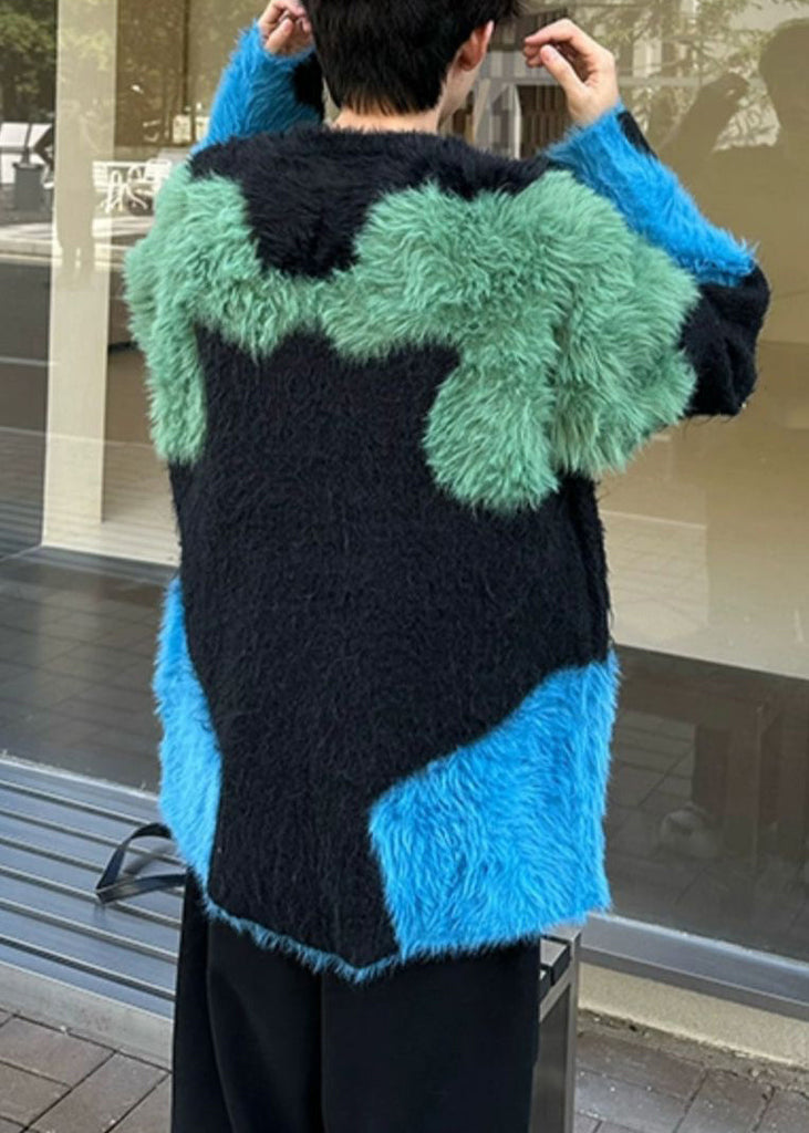 Unique Black Cozy Patchwork Mens Sweater Pullover Winter RC043