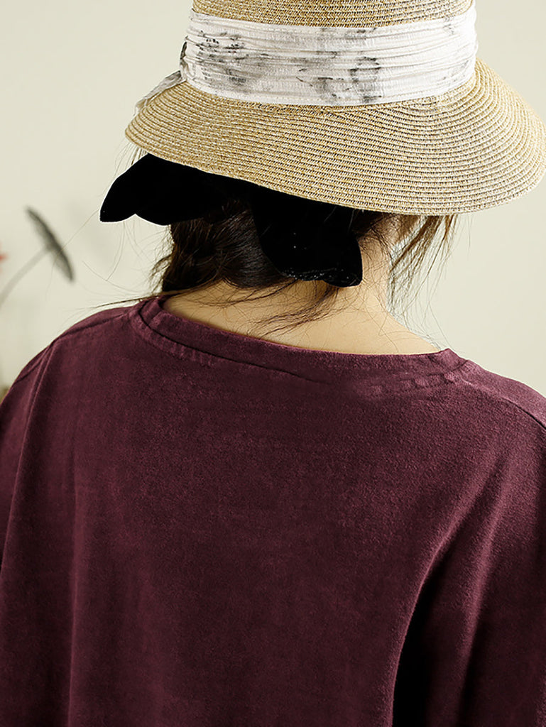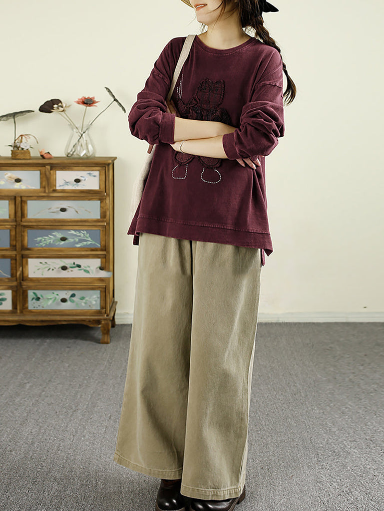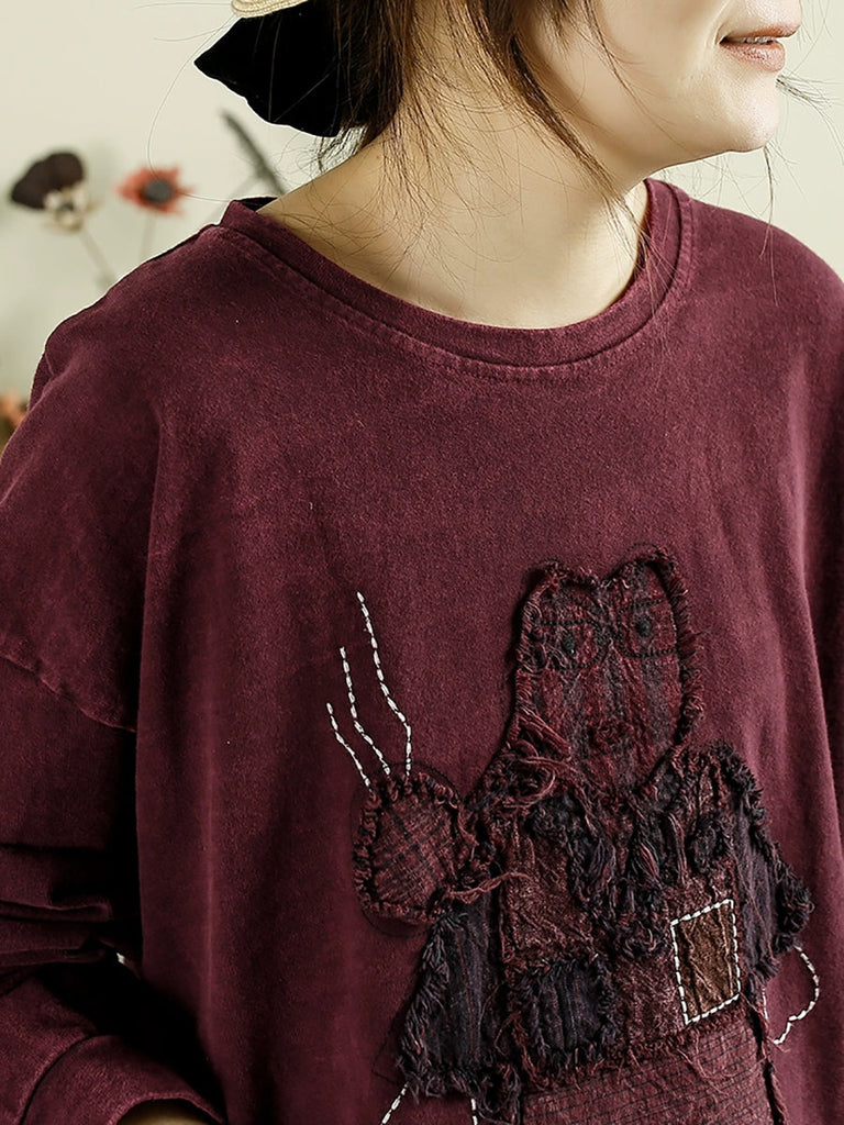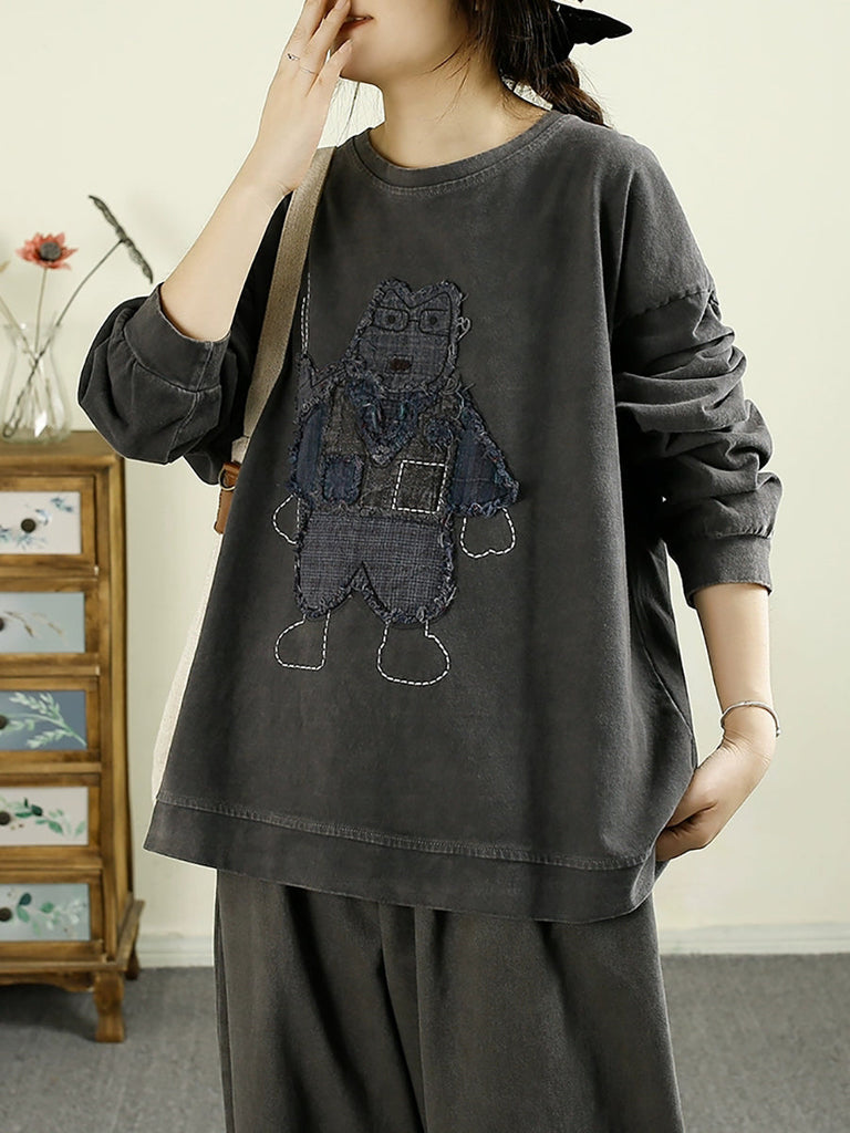 Women Autumn Vintage Cartoon Patch O-Neck Cotton Sweatshirt BA1039